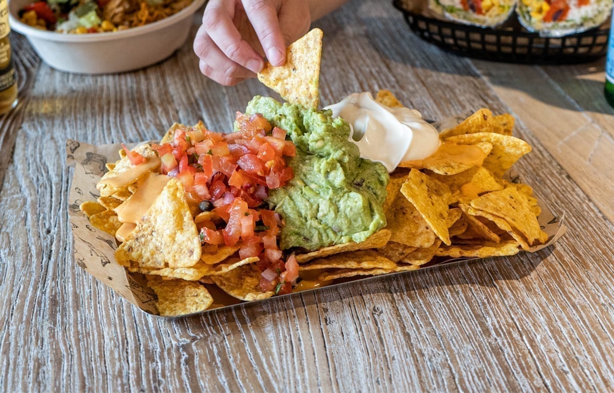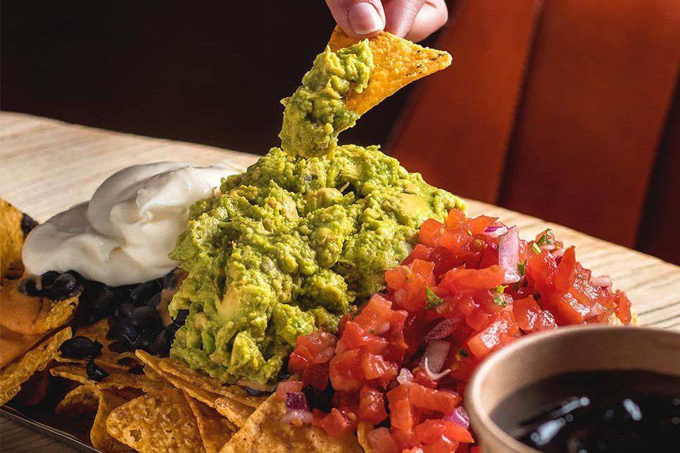 Los nachos, el clásico por excelencia, enterrados bajo una montaña de guacamole y un